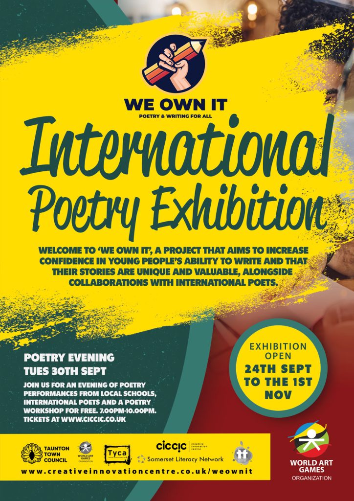 An international poetry exhibition featuring work from young people from all over the world. The project ‘We Own It’ was designed and developed by CICCIC, Matt Bryden and supported by Jackie Clementines from TYCA and the World Arts organisation, WAG. The initial idea was to bring young people together through the medium of poetry and celebrate their unique identity within their communities by creating a safe space using this accessible and creative process.