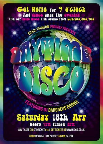 Daytime disco’s and daytime clubbing is all the rage at the moment and as CICCIC customers love our disco’s we have our very own Daytime Disco with sounds from the 60’s, 70’s, 80’s & 90’s, but this time we have Disco Dynamite Nite with DJ Baroness Boogie.