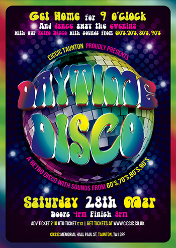 Daytime disco’s and daytime clubbing is all the rage at the moment and as CICCIC customers love our disco’s we have our very own Daytime Disco with sounds from the 60’s, 70’s, 80’s & 90’s.