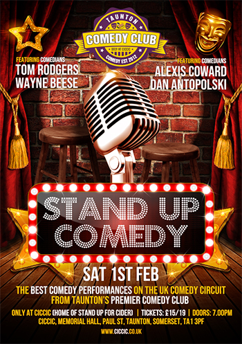 Taunton Comedy Club - Pro Stand-up Comedy Night - Sat 1st Feb (doors 7pm, start 8pm)