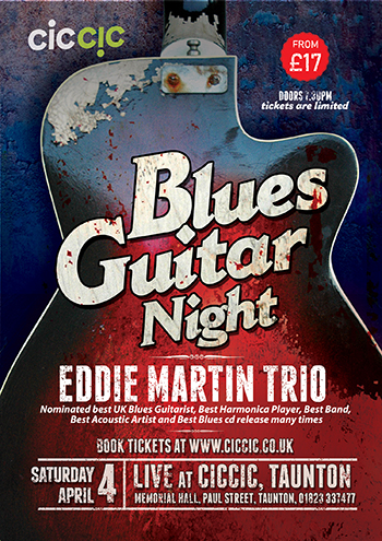 Eddie Martin makes a welcome return with his blues-rock trio to CICCIC on April 4th. His live sets are legendary, combining blistering slide guitar and strong original material with a top-drawer rhythm section.